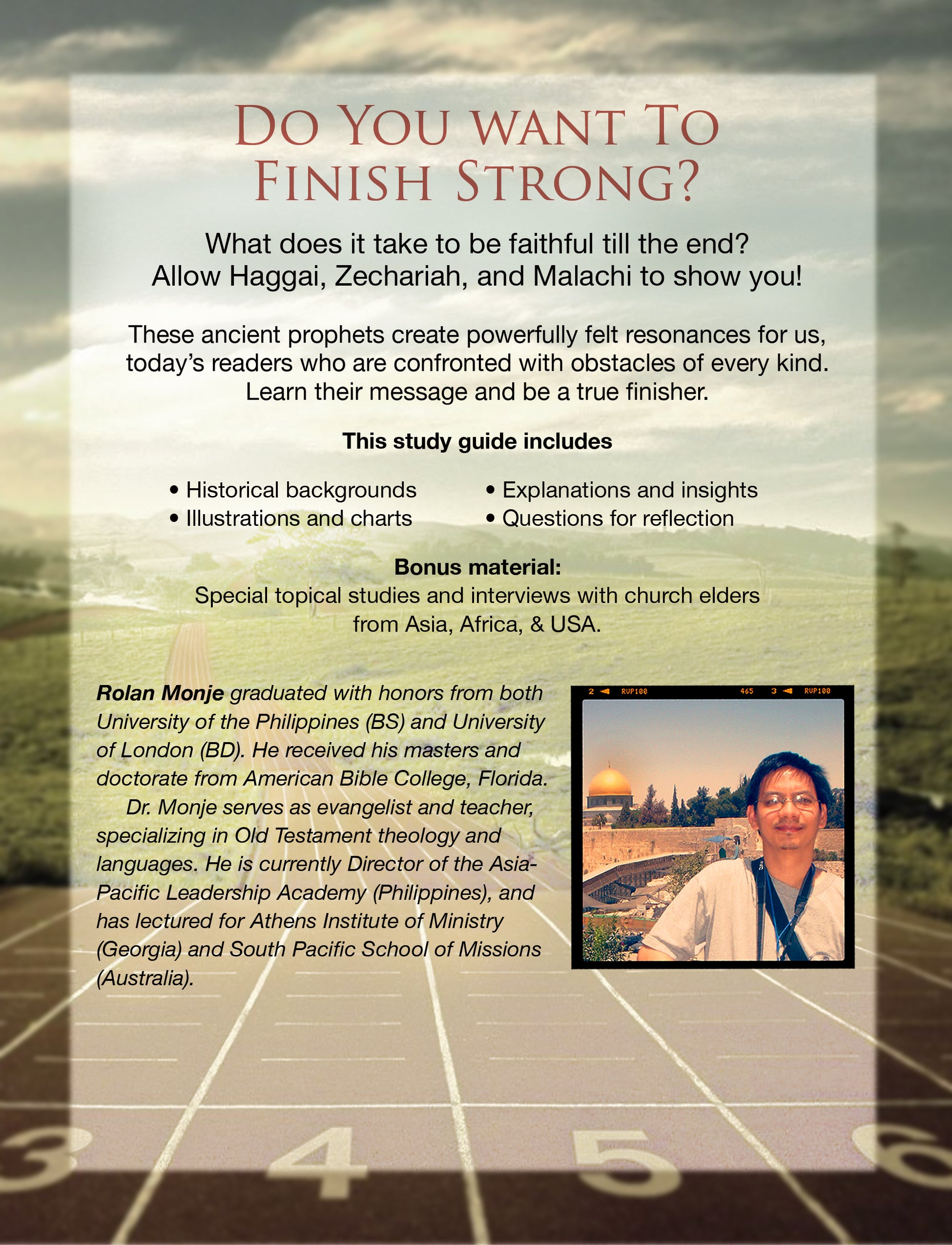 Allow Haggai, Zechariah, and Malachi to teach you! These ancient prophets of God create powerfully felt emotions for us, today's readers who are confronted with obstacles of every kind. Learn their message and be a strong and victorious finisher.